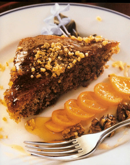 Χτυπάτε το βούτυρο και τους κρόκους με τη ζάχαρη. Ανακατεύετε το αλεύρι με το μπέικιν πάουντερ και χτυπάτε το ασπράδι να γίνει μαρέγκα. Ρίχνετε την καρυδόψιχα και προσθέτετε λίγο – λίγο το αλεύρι και την μαρέγκα. Τοποθετείτε σε βουτυρωμένη φόρμα και ψήνετε σε μέτριο φούρνο. Ξεφορμάρετε, ρίχνετε το σιρόπι και αφού απορροφηθεί τοποθετείτε σε πιατέλα και πασπαλίζετε με καρύδια.