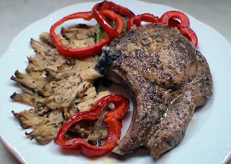 Καλύπτετε και τις 2 πλευρές της μπριτζόλας με το χοντροκομμένο μαύρο πιπέρι και το πιέζετε. Βάζετε το μισό λάδι σε ένα μεγάλο τηγάνι και προσθέτετε το κρέας όταν το λάδι είναι καυτό. Τηγανίζετε το κρέας για 3-4 λεπτά σε δυνατή φωτιά, το γυρίζετε, το αλατίζετε και συνεχίζετε το τηγάνισμα για άλλα 3-4 λεπτά. Βγάζετε το κρέας από το τηγάνι και κρατάτε τις μπριτζόλες ζεστές στο φούρνο. Προσθέτετε στο τηγάνι το βούτυρο, τα μανιτάρια, το εσαλότ και τον μαϊντανό και τα τηγανίζετε για 3-4 λεπτά σε μέτρια φωτιά. Ρίχνετε στο μίγμα αλάτι και πιπέρι και προσθέτετε και το κονιάκ και τα τηγανίζετε για 1 λεπτό. Προσθέτετε και τη κρέμα, αλάτι και πιπέρι και τα τηγανίζετε για 3-4 λεπτά σε δυνατή φωτιά. Βγάζετε τις μπριτζόλες από το φούρνο και αδειάζετε τους χυμούς του στη σάλτσα. Ξαναβάζετε τις μπριτζόλες στο φούρνο και ανακατεύετε τη σάλτσα και τηγανίζετε για 2 λεπτά ακόμα. Ρίχνετε τη σάλτσα στις μπριτζόλες και σερβίρετε.