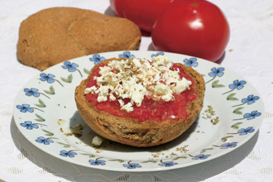 Βρέχουµε ελαφρά τους ντάκους µε λίγο νερό, αφήνουµε να στραγγίσουν και τους περιχύνουµε µε ελαιόλαδο.