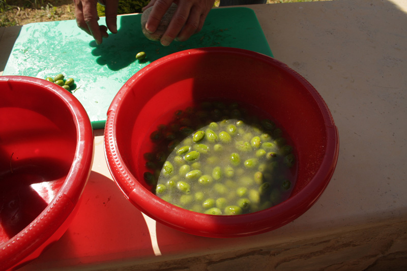 Κολυμπάδες: Βάζουμε τις ελιές σε καθαρό νερό που το αλλάζουμε κάθε 8 ημέρες. Το νερό αλλάζεται 3 φορές συνολικά, τις ξεπλένουμε και τις τοποθετούμε σε 10% άλμη. Για άρωμα μπορούμε να προσθέσουμε λίγο χυμό από λεμόνια ή νεράντζια.