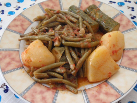 Σε µια άλλη κατσαρόλα σοτάρουµε τα µάραθα και το κρεµµύδι ελαφρά µε το ελαιόλαδο. Ρίχνουµε 1 φλιτζάνι νερό και τα αφήνουµε να ψηθούν 20 λεπτά. Προσθέτουµε τα φασόλια, τις ντοµάτες, το αλάτι, το πιπέρι και λίγο νερό. Αφήνουµε το φαγητό να σιγοβράσει για 20 λεπτά ακόµα.